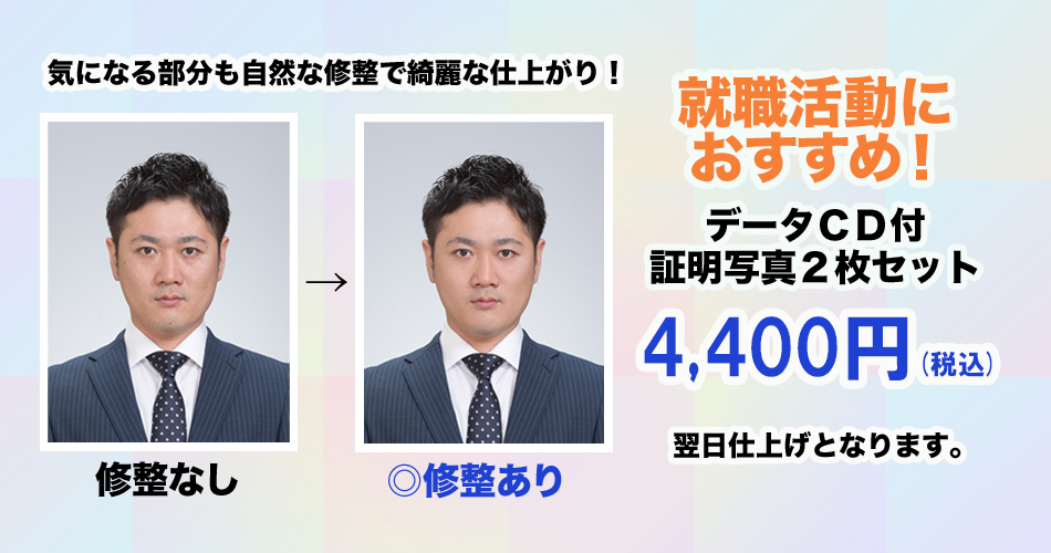 就職・転職活動写真、パスポート写真、マイナンバー申請用写真など ご利用目的に合わせて撮影させていただきます。